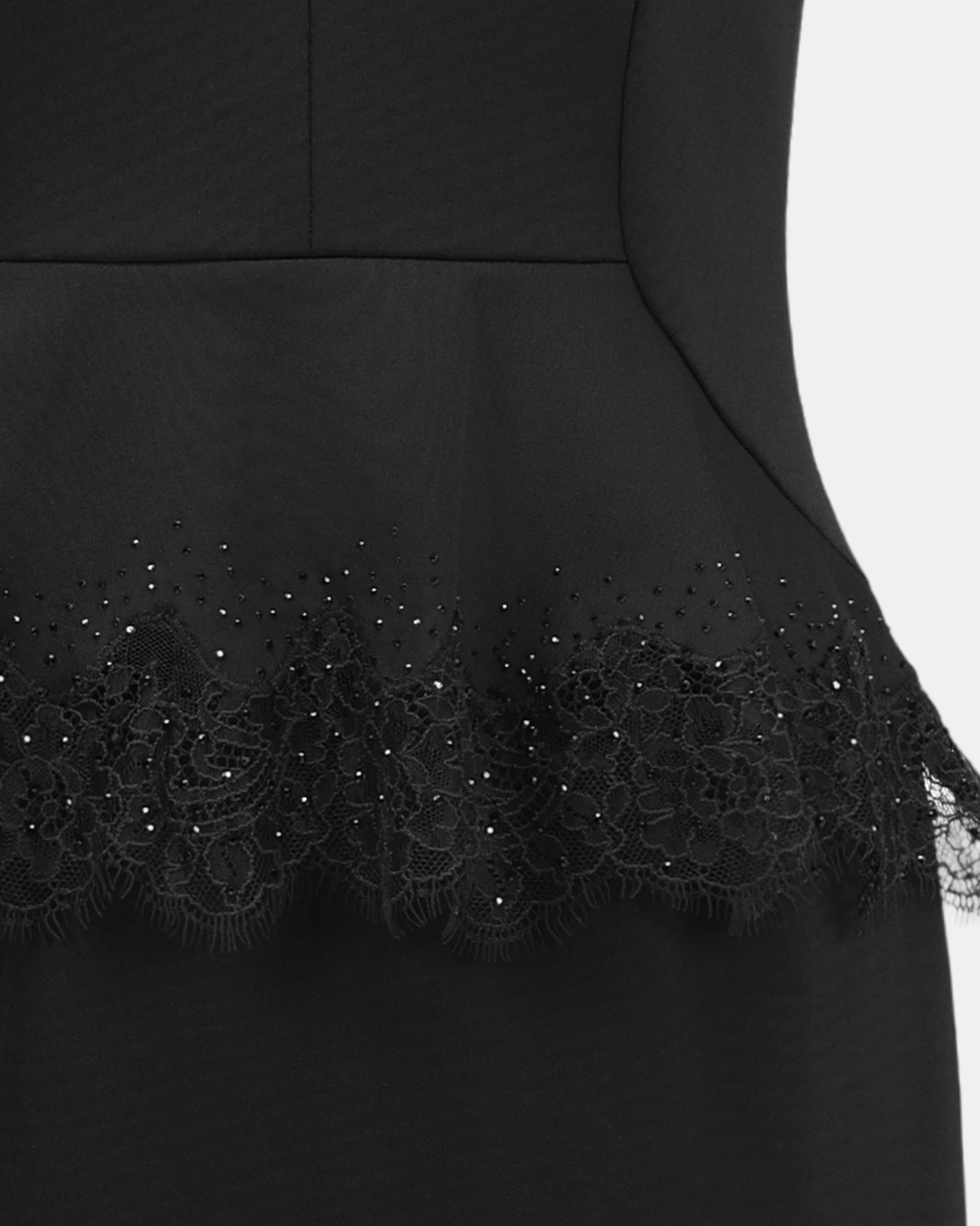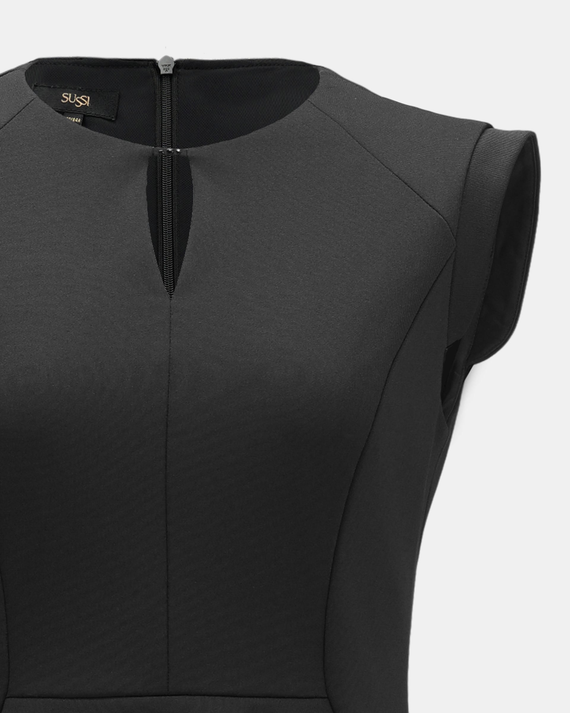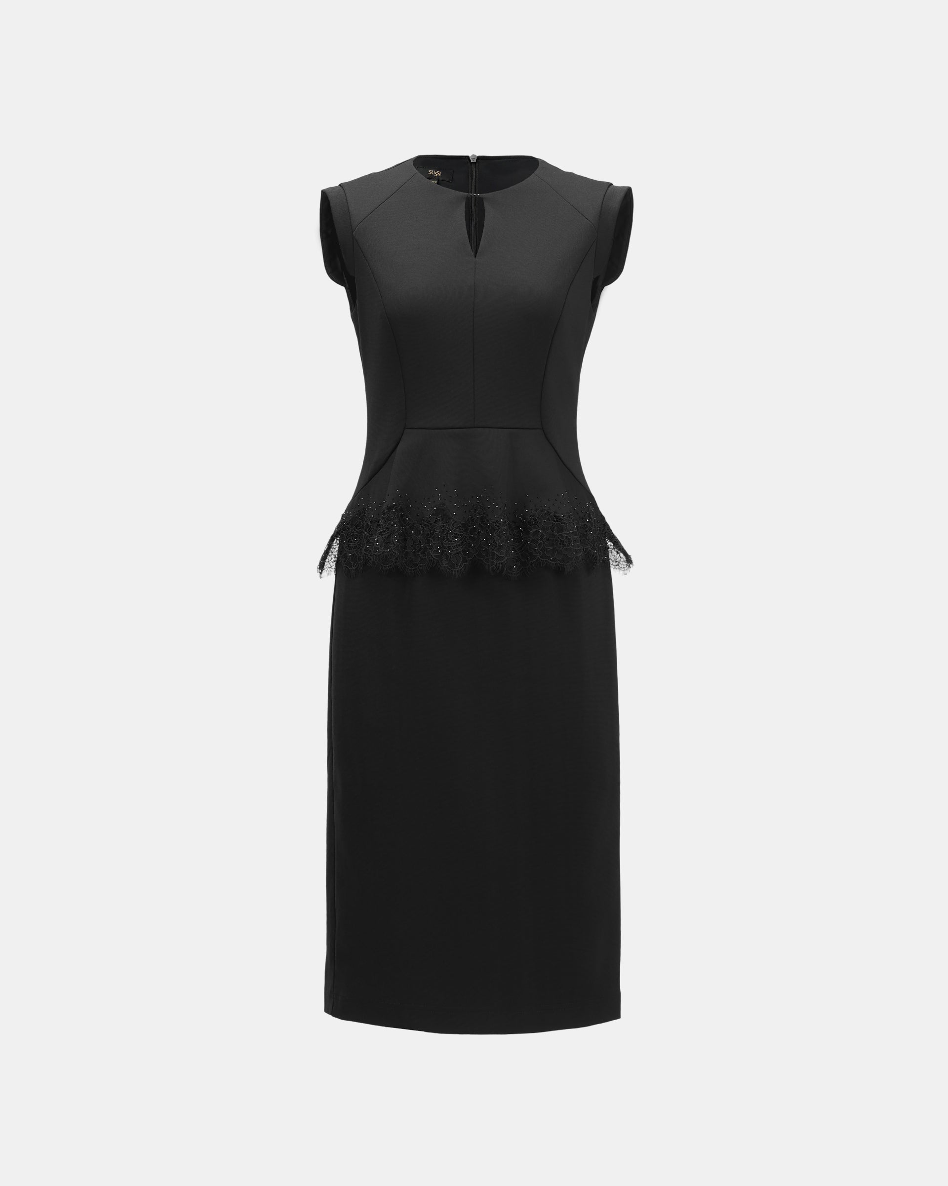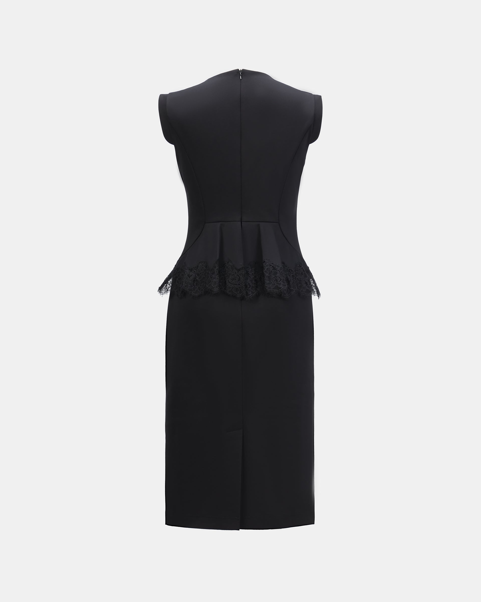 This versatile silhouette masterfully balances professional polish with after-hours allure. The sleeveless, tailored bodice projects boardroom-ready sophistication, while strategically placed lace insets add a feminine counterpoint. A modern keyhole cutout elevates the neckline detail, creating subtle intrigue that transitions effortlessly from daytime presentations to evening receptions. Style with structured leather accessories for corporate meetings, then switch to metallic accents for post-work cocktails - this architectural piece adapts to your agenda with metropolitan ease.