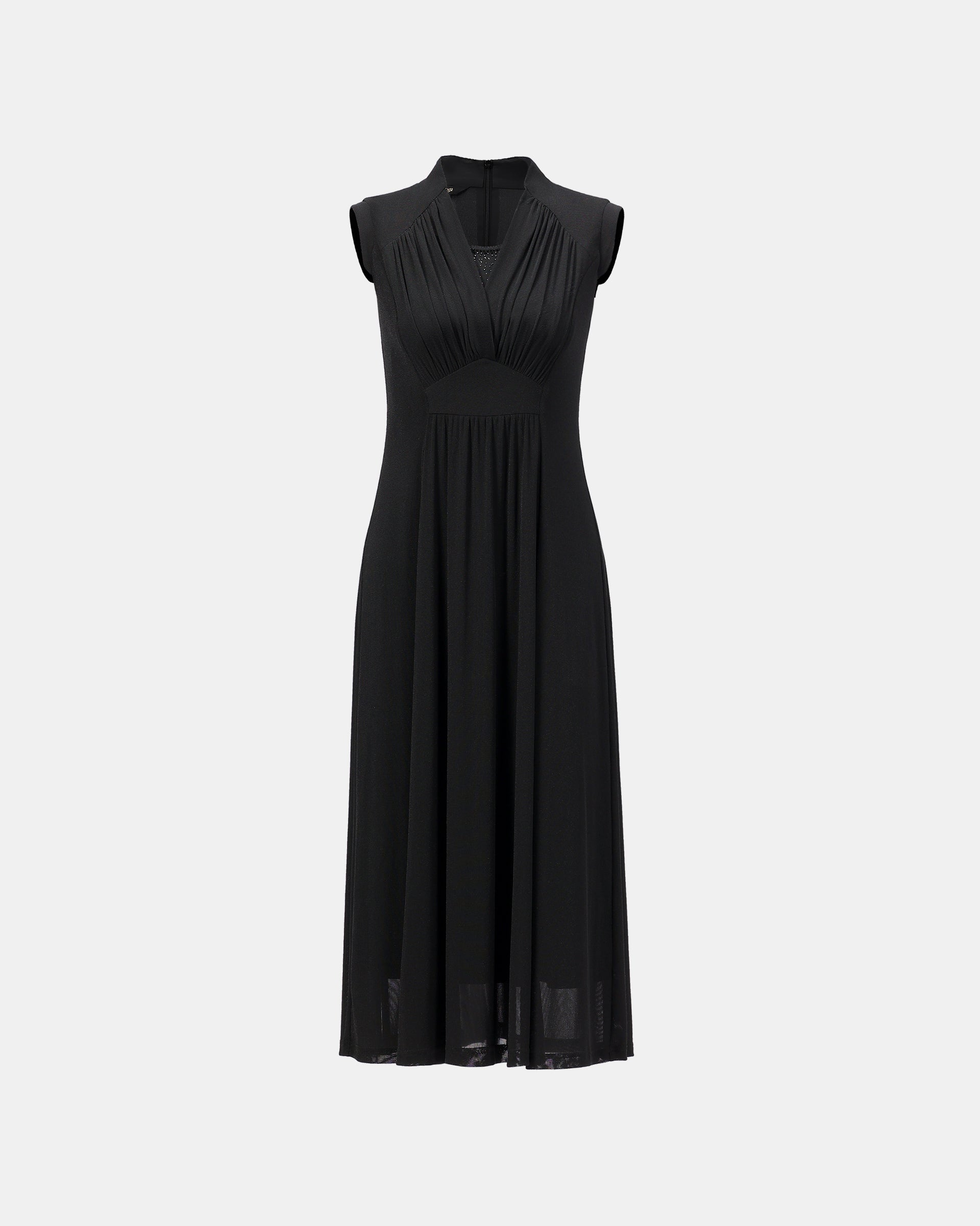 Crafted for the modern urbanite's dynamic lifestyle, this sleeveless silhouette highlights toned arms while the V-neckline and draped details create sculptural dimension. Its clean architectural lines embody refined minimalism, effortlessly transitioning from daytime errands to evening affairs when styled with a structured clutch. The versatility shines through in its chameleon-like adaptability - equally chic paired with strappy sandals for gallery-hopping brunch dates or elevated with metallic accessories for cocktail-hour sophistication. A masterclass in understated polish, this piece celebrates the power of intentional simplicity in contemporary femininity.