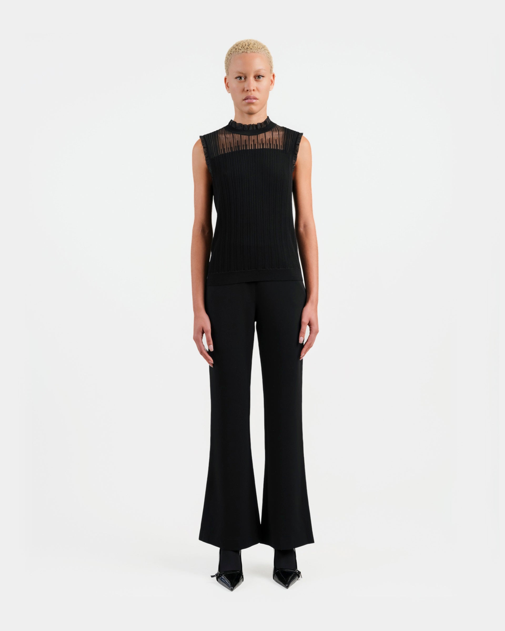 Un haut en tricot raffiné qui allie texture et élégance, parfait pour les occasions professionnelles et décontractées.