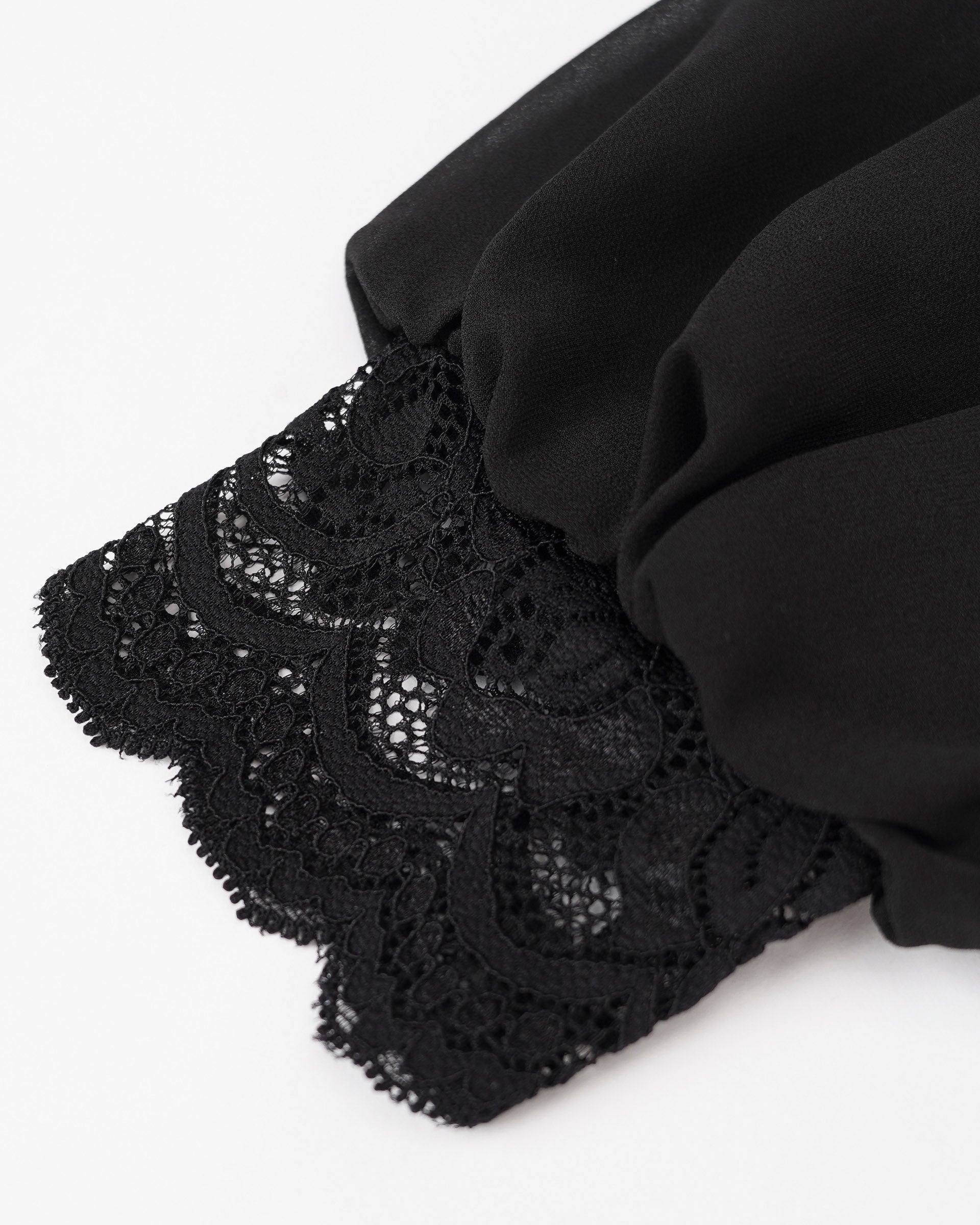 Ce haut sophistiqué à empiècements en dentelle est orné de délicats boutons fabriqués à la main qui rappellent l'art traditionnel. Les manches lanternes et les détails fluides améliorent le mouvement, ajoutant un charme visuel élégant.