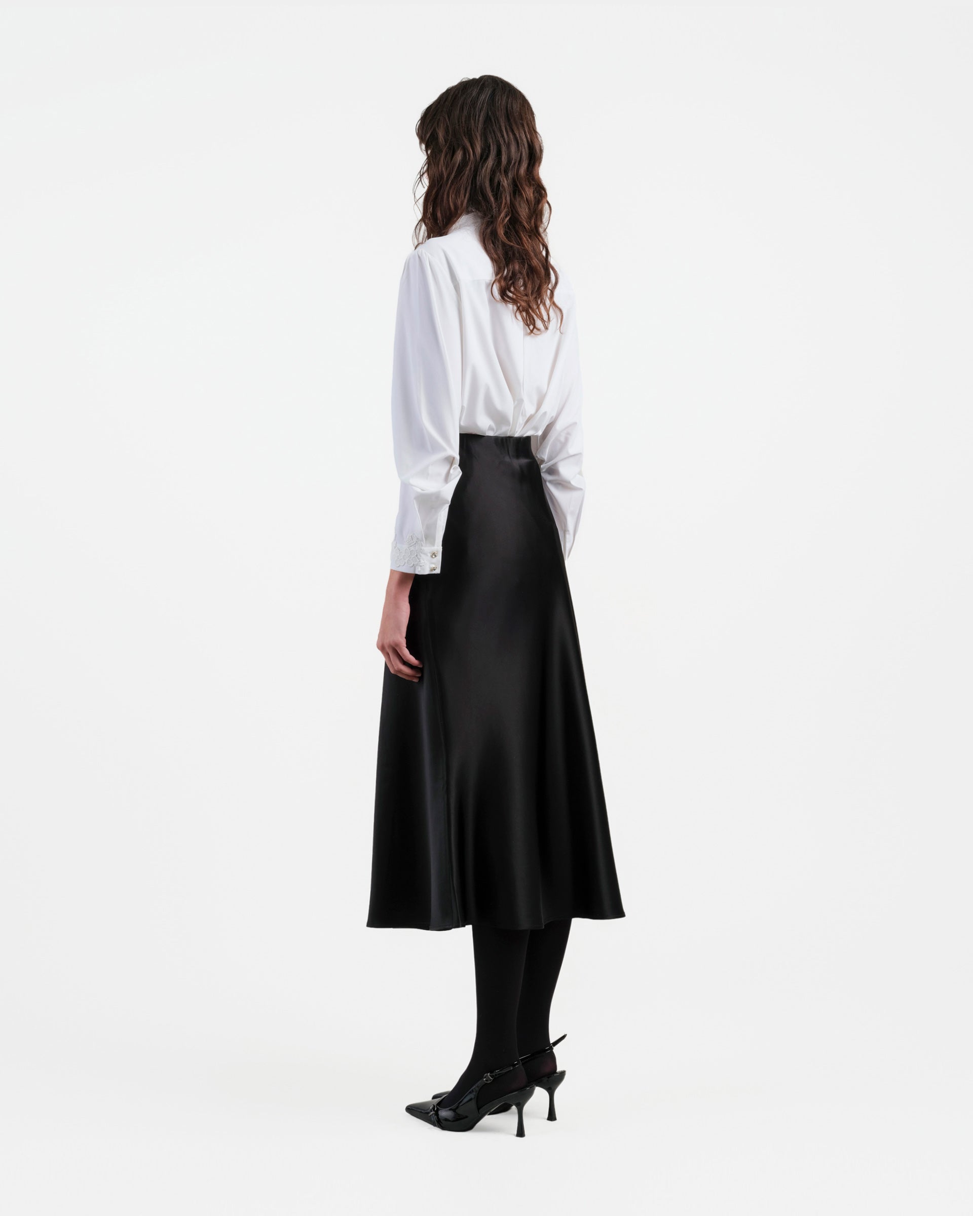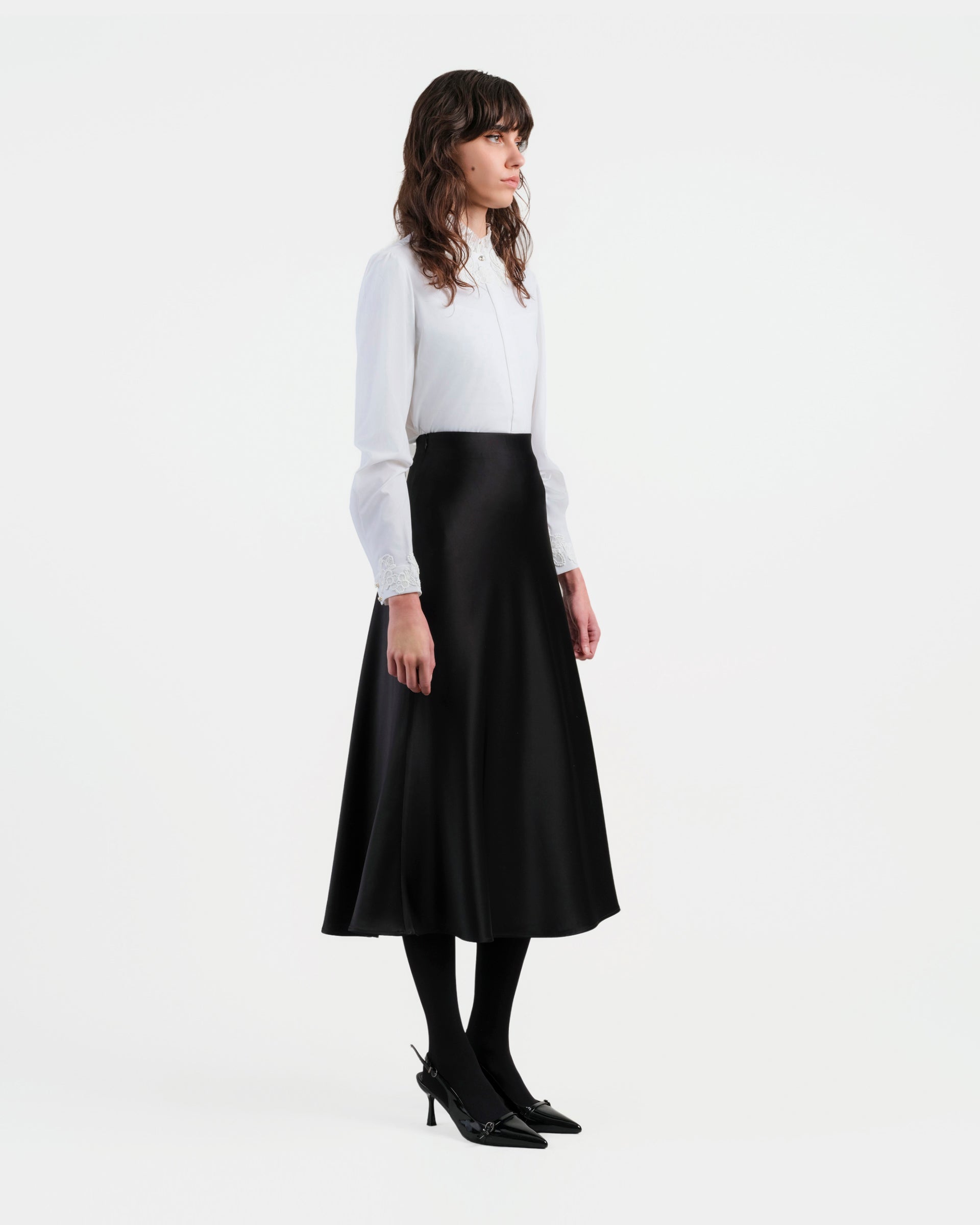 Ce chemisier présente une coupe ajustée qui allie élégance structurelle et touches florales douces. Le col à lacets et la broderie délicate lui confèrent une sophistication intemporelle, parfaite pour les tenues professionnelles modernes.